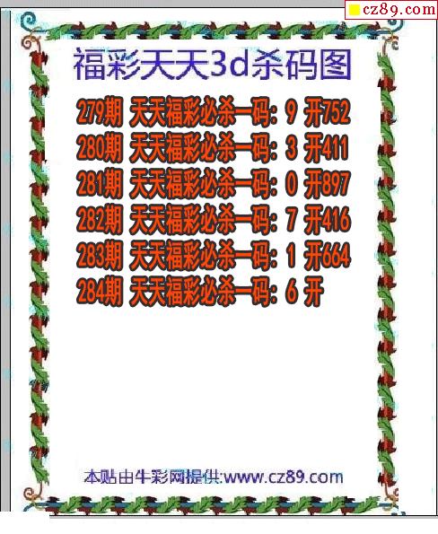 > 福彩天天杀码2025284期3d图谜(原创)