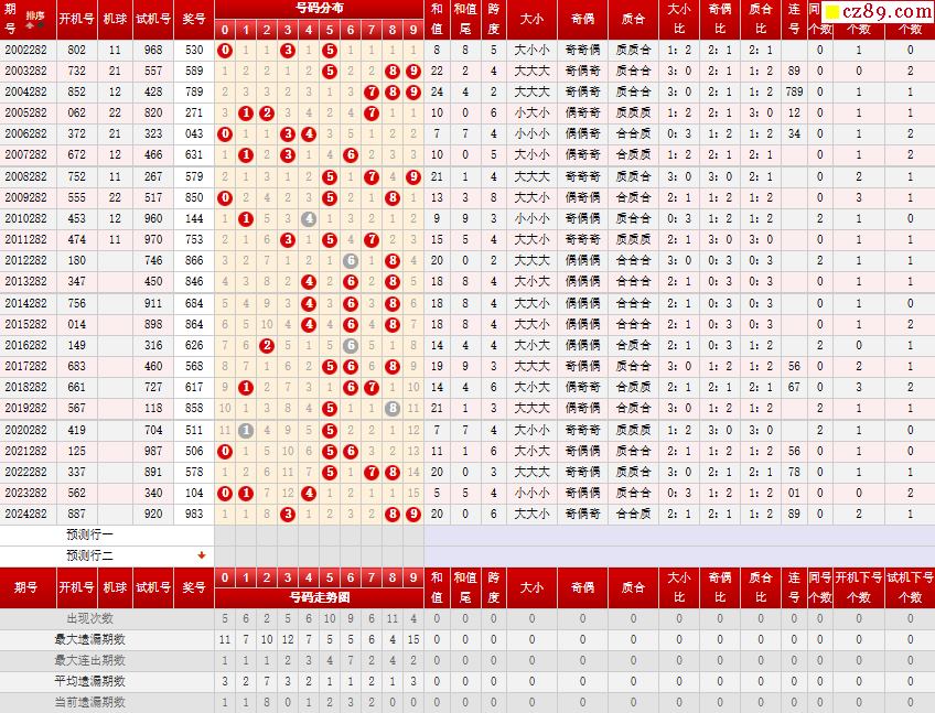 第282期福彩3D历史同期对比